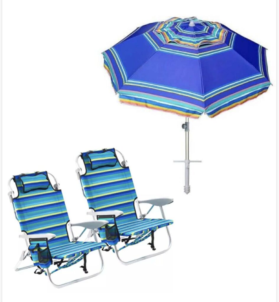 2 beach chairs + umbrella